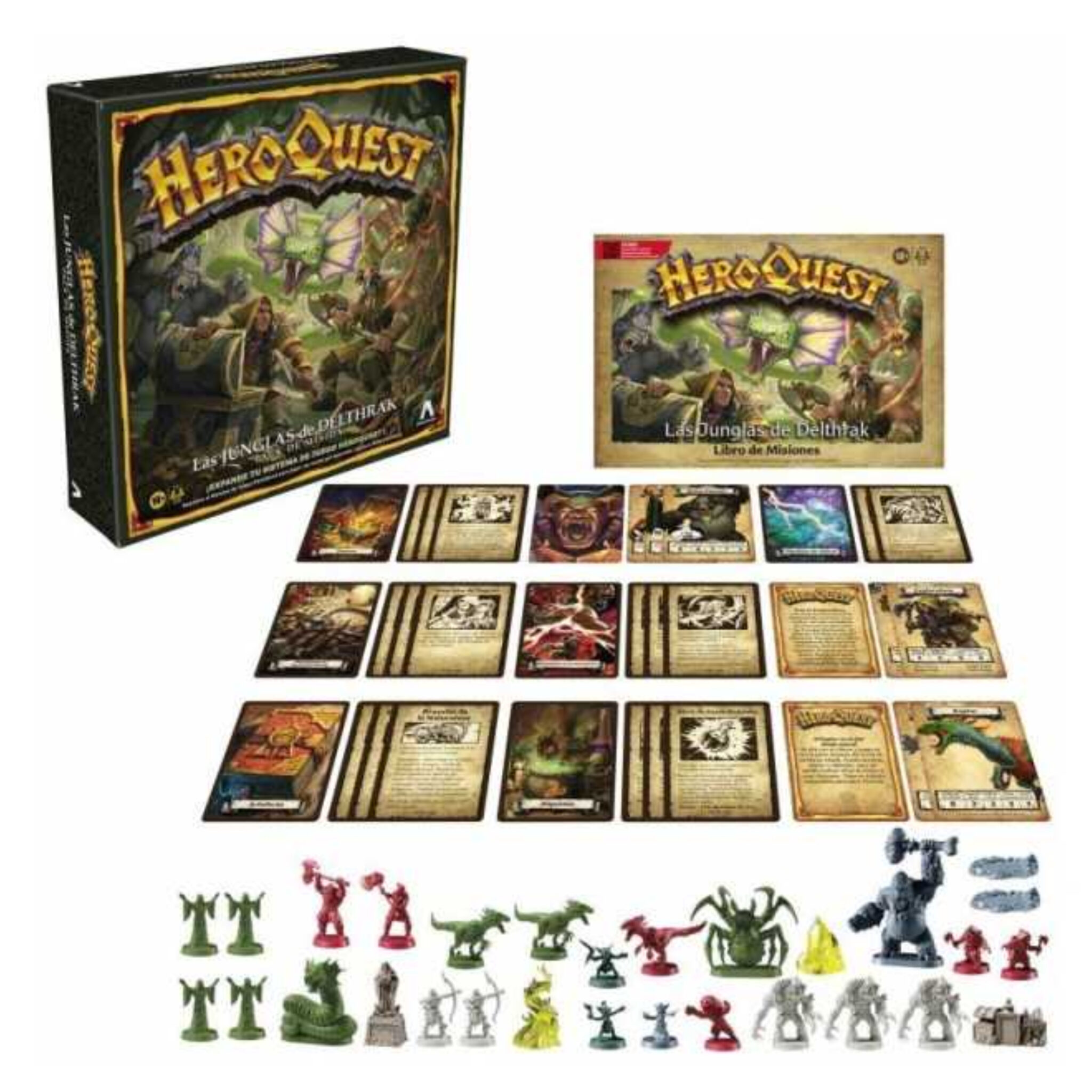 HEROQUEST PACK EXPANSIÓN LAS JUNGLAS DE DELTHRAK. ¡La aventura continúa con el Pack de Misión HeroQuest Las Junglas de Delthrak! En la densa jungla que bordea las montañas del Fin del Mundo, se asienta una antigua civilización de Enanos. Un artefacto sagrado muy preciado por los refugiados Enanos de la Torre de Kellar ha sido robado, y una Plaga del Terror ha infectado las tierras de la jungla.