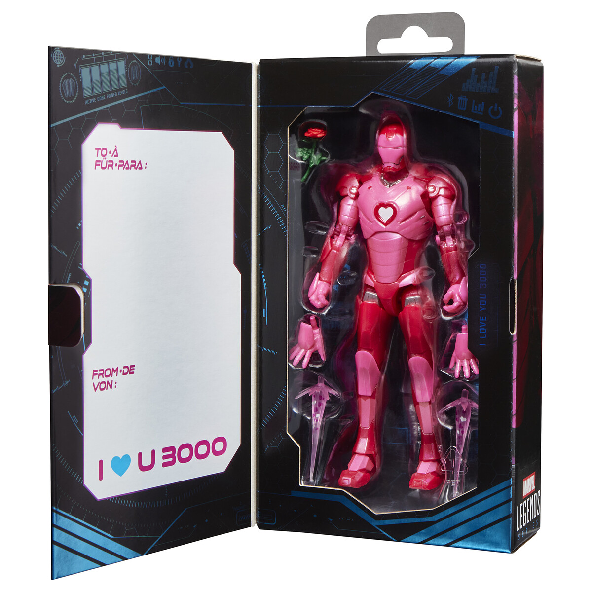 - I LOVE YOU 3000: Esta figura de Iron Man está inspirada en el personaje de Marvel Studios con un tierno giro, y cuenta con un diseño rosa y un reactor ARC en forma de corazón en su pecho