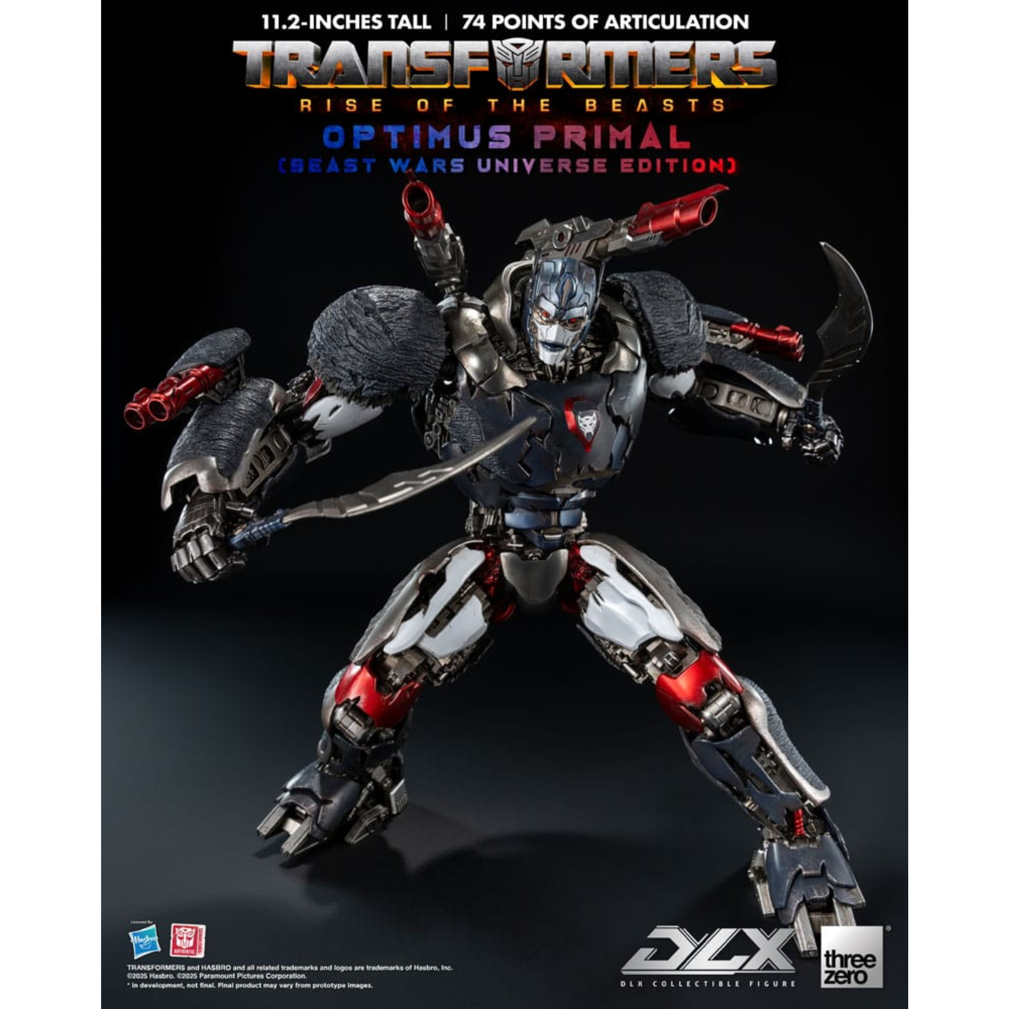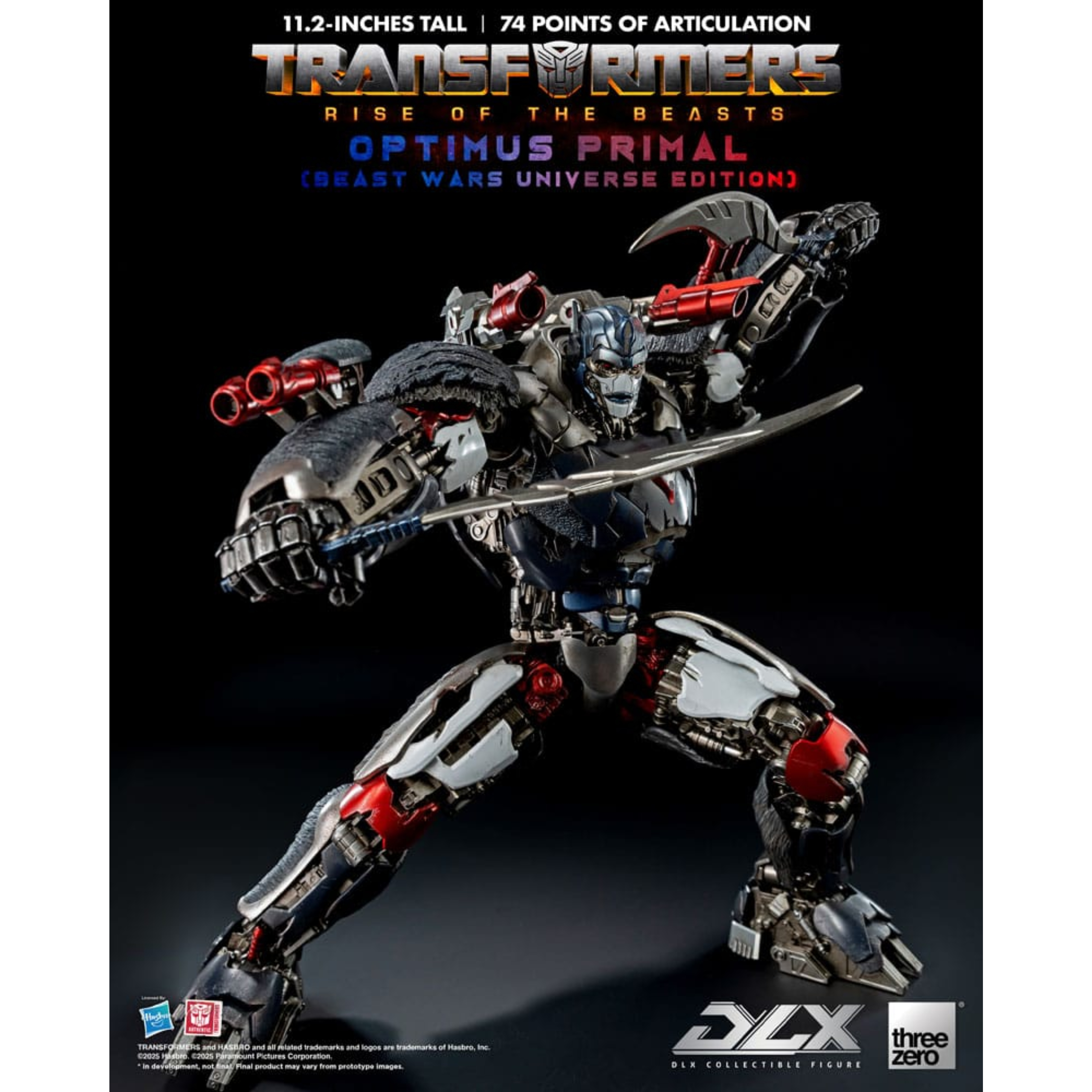 OPTIMUS PRIMAL (BEAST WARS UNIVERSE EDITION) TRANSFORMERS: EL DESPERTAR DE LAS BESTIAS. En el universo Beast Wars, Optimus Primal es un líder poderoso, justo y táctico. Como comandante de los Maximals, lucha contra los Predacons en un antiguo conflicto que combina el legado de la alta tecnología con los instintos primarios. La edición Beast Wars Universe rinde homenaje a este emblemático personaje con una reinterpretación moderna y muy detallada.