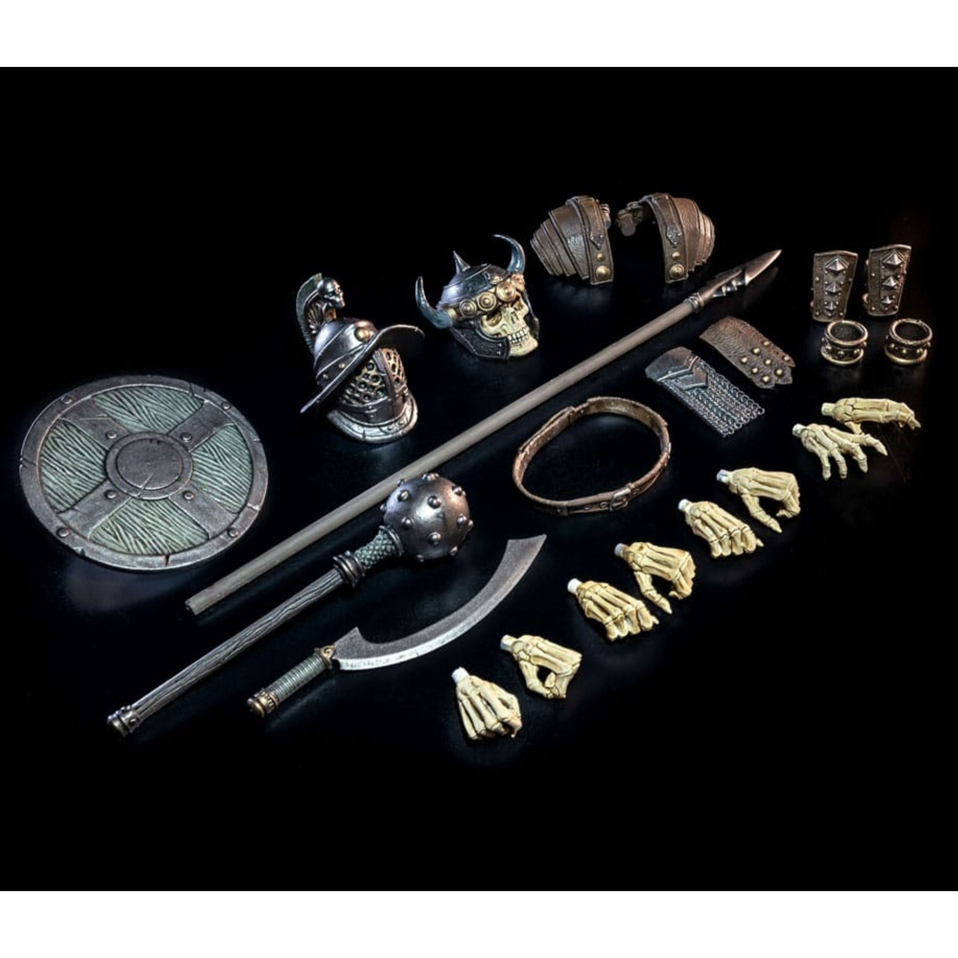 SKELETON RAIDER MYTHIC LEGIONS ALL STARS. Vikenfell, que en su día fue un próspero asentamiento en el norte del reino, es ahora un lugar maldito, acechado por los restos óseos de los despiadados saqueadores que lo habitaron. Los supervivientes que huyeron de estas tierras hacia las frías tierras de Bjorngar contaron la historia de un barco que regresó de una expedición condenada al fracaso en aguas del sur.