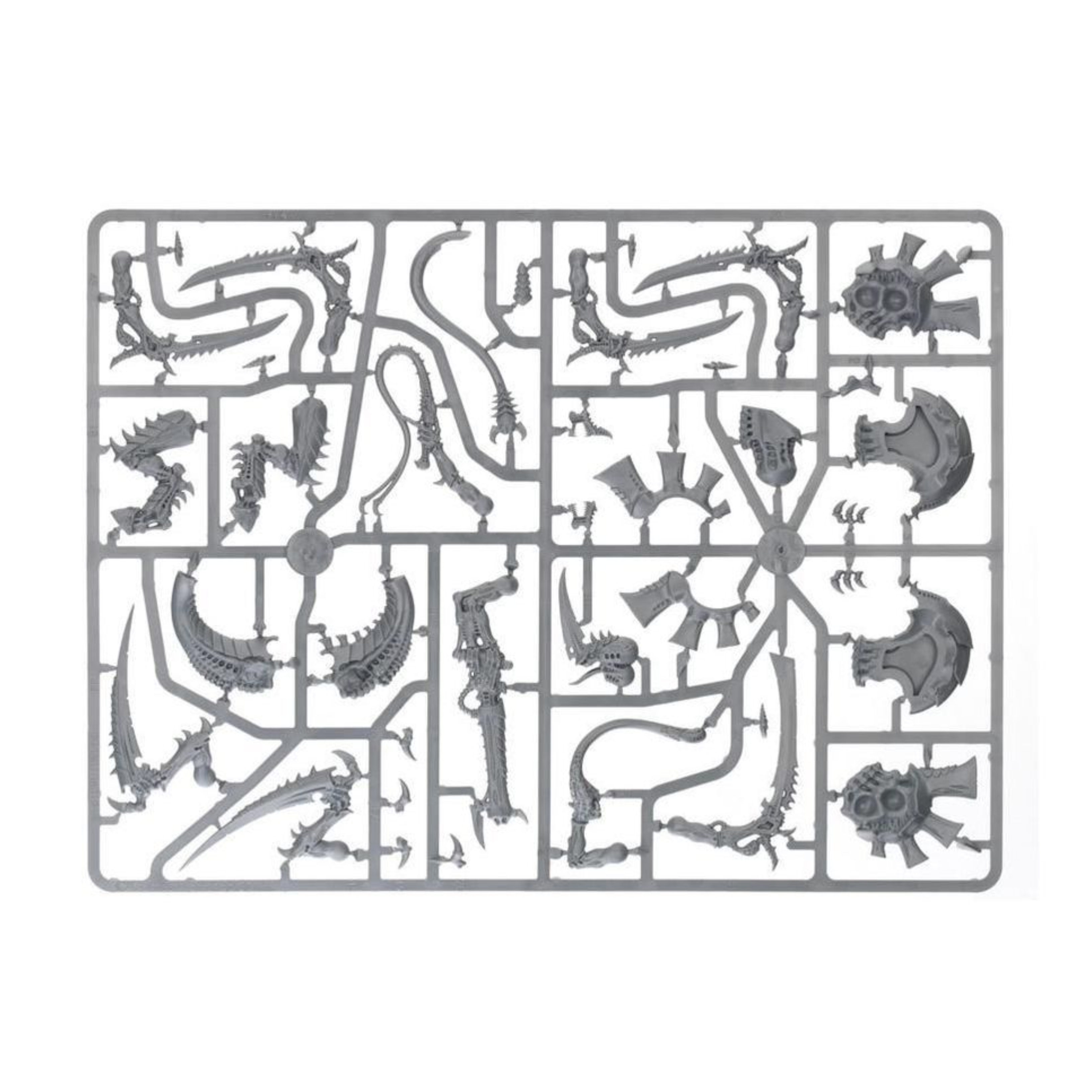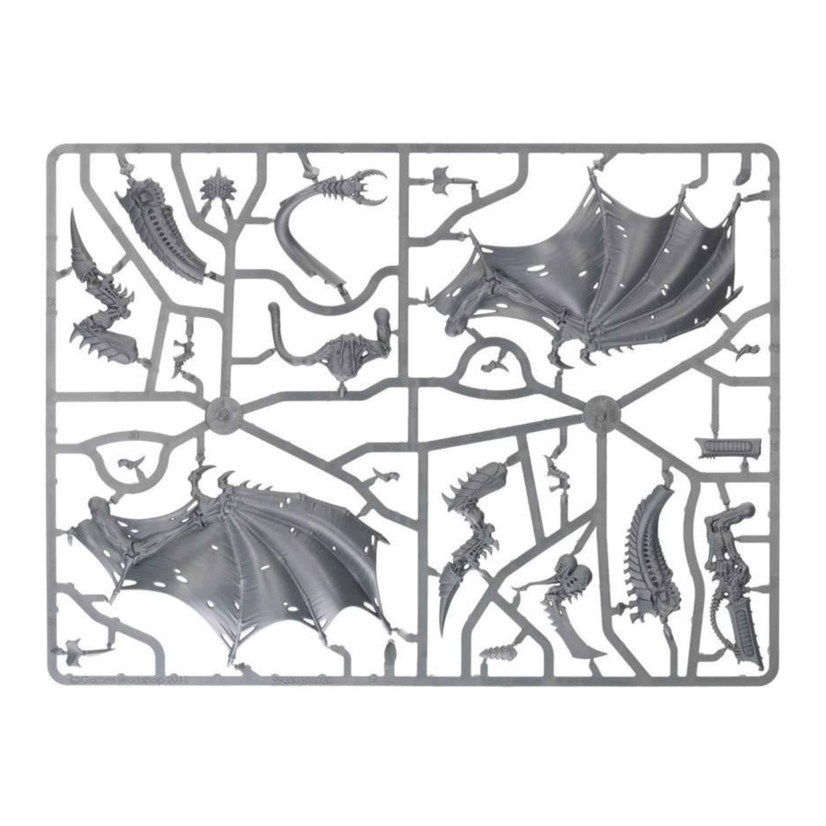 Con este kit de plástico multicomponente puedes montar un Tirano de Enjambre Alado, una bestia impresionante e increíblemente dinámica que puedes montar para asumir diversas funciones en el campo de batalla. Esta imponente criatura es una pieza central adecuada para cualquier ejército tiránido: se presenta con las alas fibrosas y desgarradas extendidas, dejando solo su cola de serpiente en contacto con el suelo, como si se lanzara a volar o se abalanzara sobre su presa. El kit cuenta con una gran variedad de armas, incluyendo dos garras afiladas, un cañón venenoso pesado, un cañón estrangulador, una espada ósea y un látigo, así como biomorfos como glándulas y sacos de toxinas, además de otras piezas para personalizar tu Tirano de Enjambre Alado. También puedes montar este kit como Tirano de Enjambre sin alas, o como el terrible Señor de la Horda.